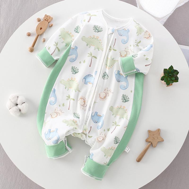 Весенний хлопковый детский спальный мешок пижама: Длинный рукав, разрез штанины, застежка-молния 100