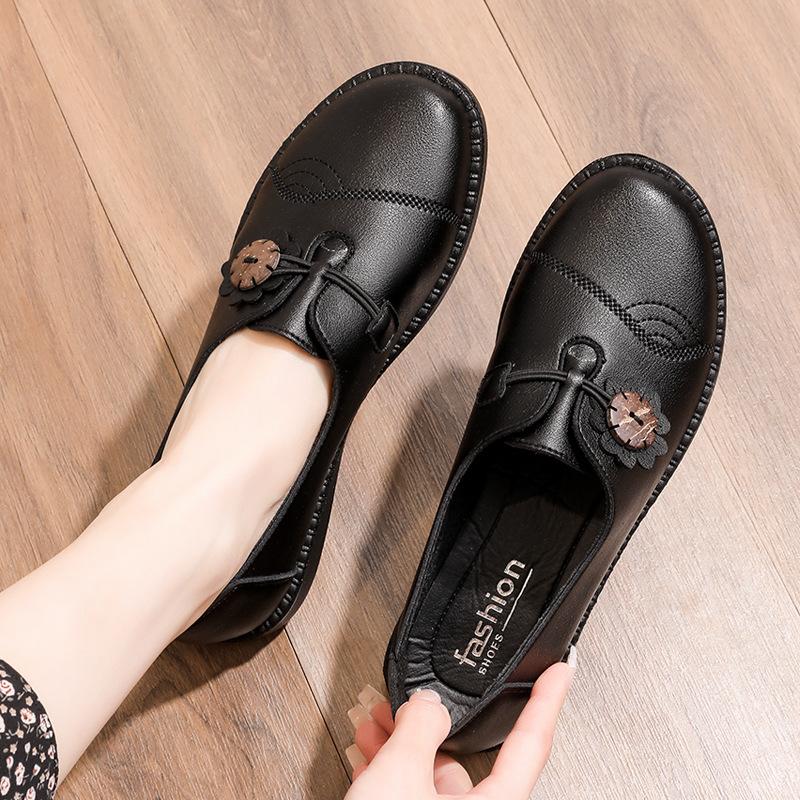 Весна Осень Женские Балетки Женские Кожаные Дышащие Повседневные Туфли Женские Мокасины Слипоны Обувь Для Вождения Большие Размеры 40 чёрный