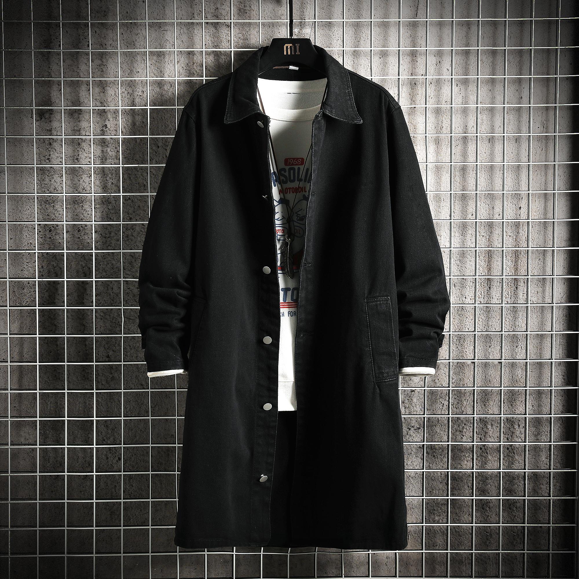 Весна Осень Мужская Джинсовая Куртка Мужская Свободная Джинсовая Куртка Средней Длины Повседневная Пальто Мужской Тренчкот С Отложным Воротником Корейская Модная Верхняя Одежда Плюс Размер 5XL чёрный
