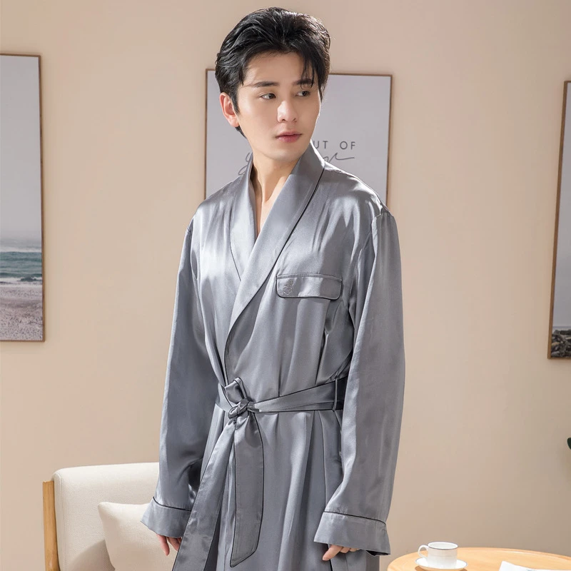 Весна Осень 100% шелк роскошный Мужской Атласный халат для душа мужское кимоно пижамы домашние Топы ночная рубашка пижама мужские халаты пик...