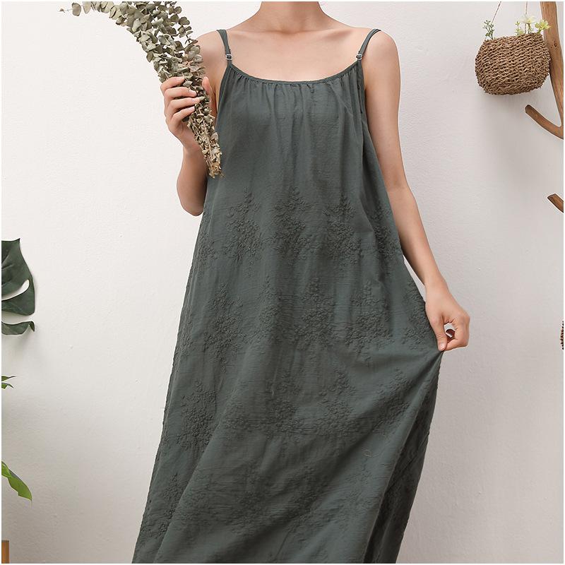 Весна/лето День Mori Woman Свежее Милое Однотонное Платье Вышитое Свободная Талия с Поясом Базовое Длинное Платье One Size зелёный