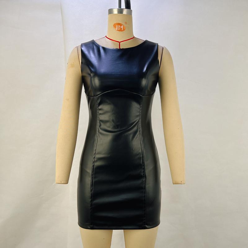 Весна и лето Новое облегающее платье без рукавов из искусственной кожи с эффектом похудения для женщин M