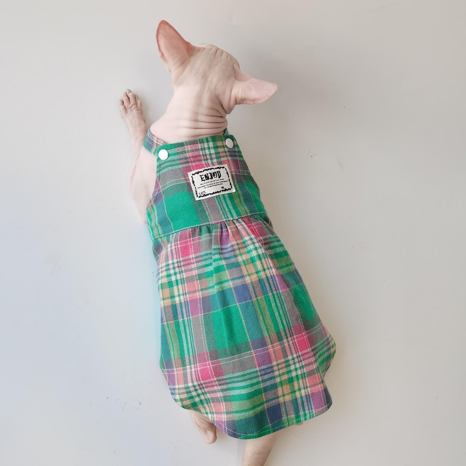 Весна и лето Сфинкс, голая кошка, немецкая одежда для домашних животных, хлопковая клетчатая юбка на бретельках XS