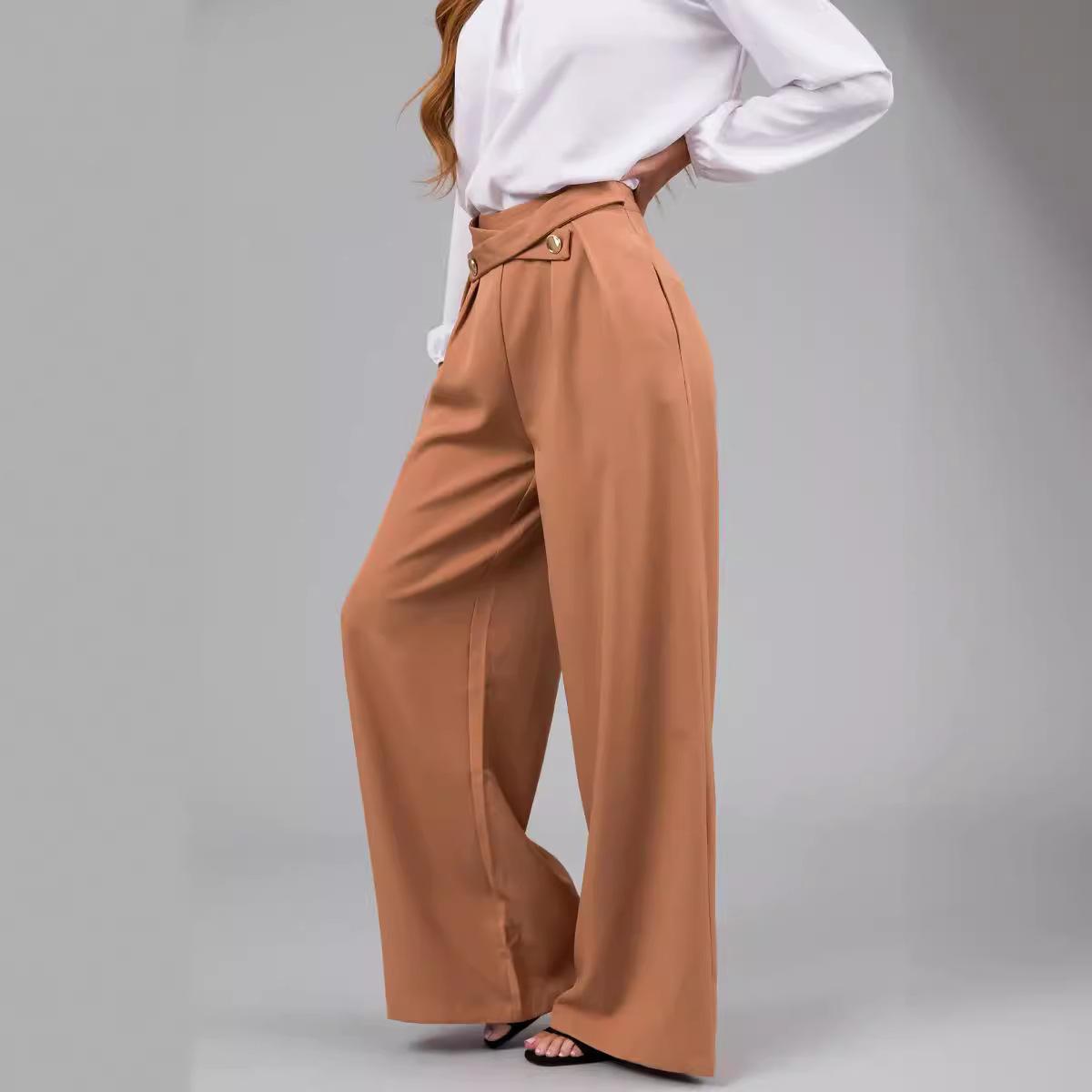 Весна и лето женские повседневные модные брюки больших размеров с карманом на молнии прямые брюки с широкими штанинами 2XL оранжевый