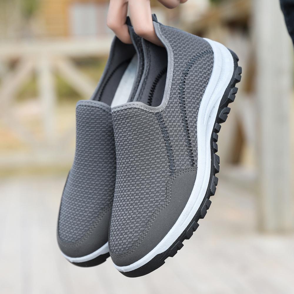 Весна и лето новая мужская рабочая обувь сетчатая дышащая повседневная спортивная тканевая обувь ленивая на одном педале летающая тканая обувь 44 серый