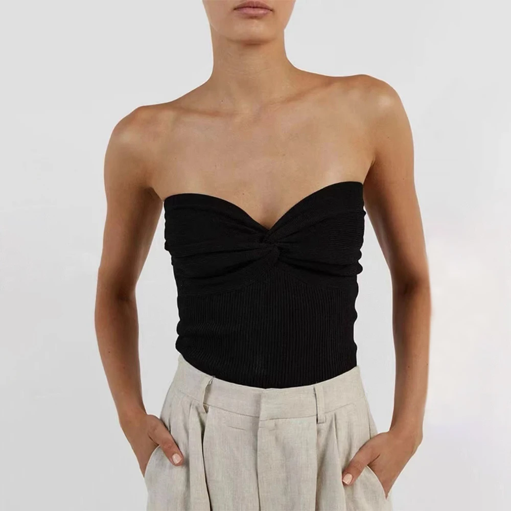 Весна-лето 2023, нишевая Минималистичная майка с пуговицами и узлом, 3 цвета, сексуальные короткие топы без рукавов в европейском и американском стиле