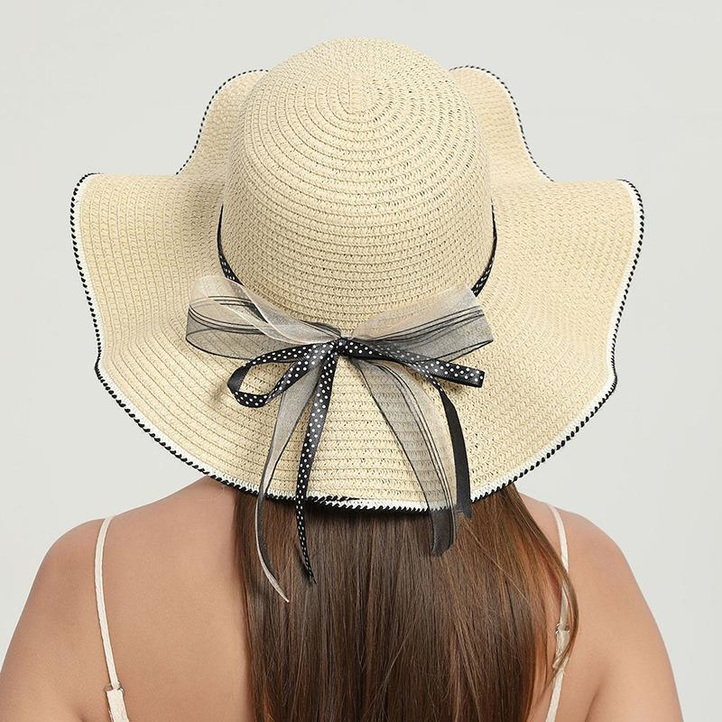 Весна/лето 2025 г. Шляпа от солнца с лентой и узлом для взрослых, соломенная шляпа, солнцезащитная пляжная шляпа, элегантная