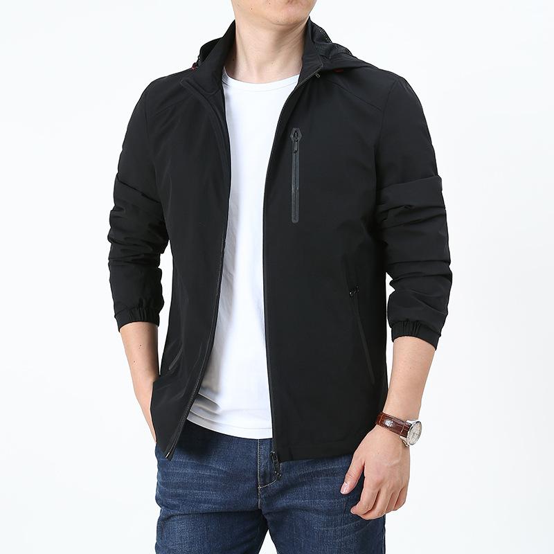 Весна и осень Новая мужская четырехсторонняя эластичная куртка Мужская повседневная куртка с возможностью снятия шляп Тонкая короткая куртка 4XL