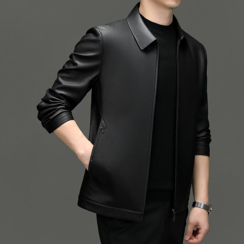 Весна и осень Новая натуральная кожаная куртка мужская тонкая кожаная куртка с короткими лацканами для мужчин среднего и пожилого возраста 4XL