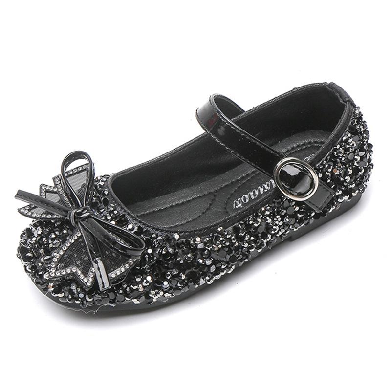 Весна и осень Новые кожаные туфли для девочек со стразами в корейском стиле с бантом и блестящими кристаллами для девочек-принцесс 36 чёрный