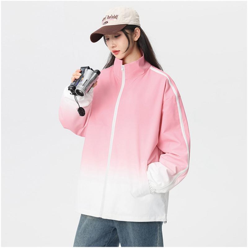 Весна и осень Повседневная куртка Trend Ins Wind Couple Gradual Change Универсальная свободная куртка большого размера Tooling Stand-up 3XL розовый