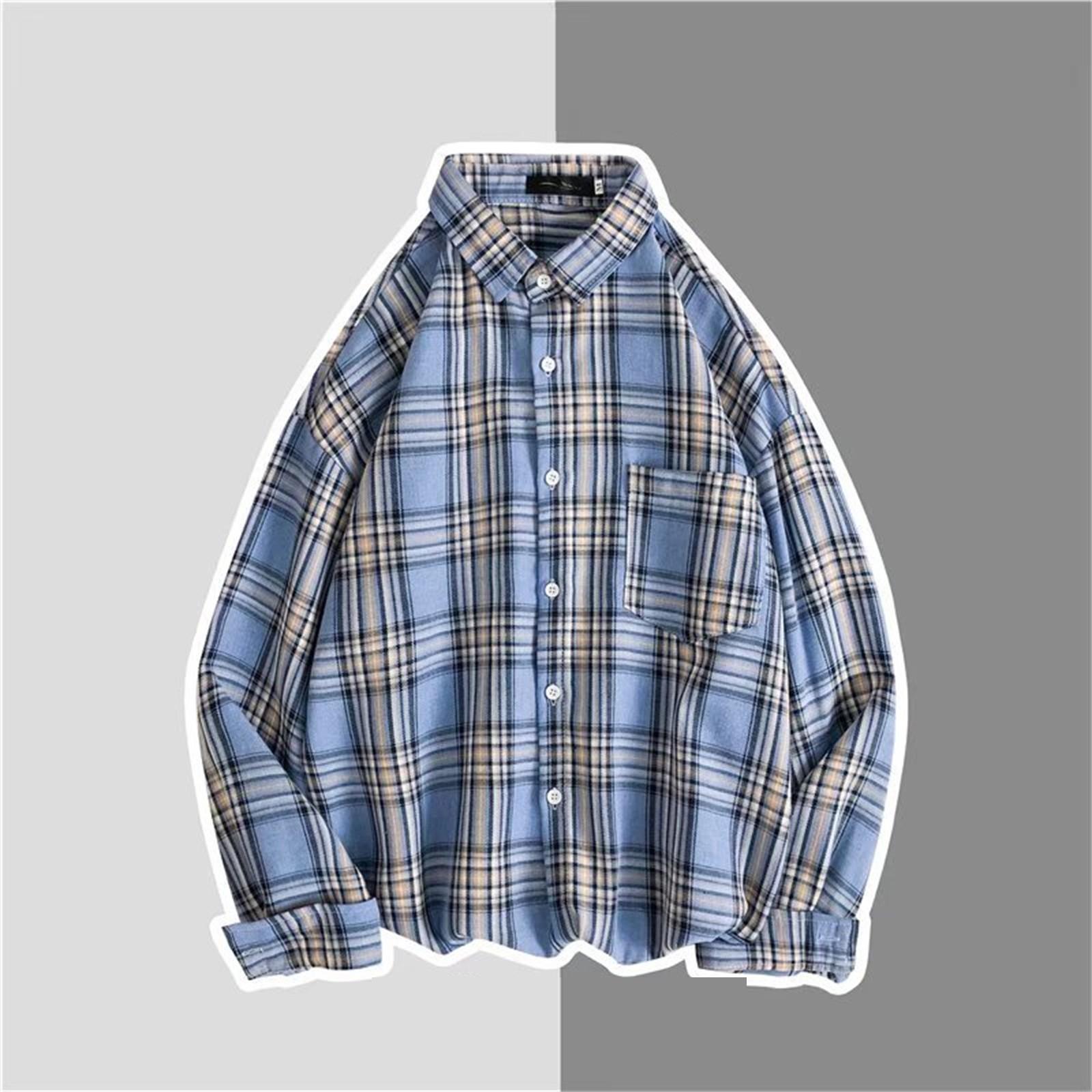 Весна и осень, новая мужская повседневная шерстяная клетчатая рубашка с длинными рукавами, свободная рубашка для пары L синий