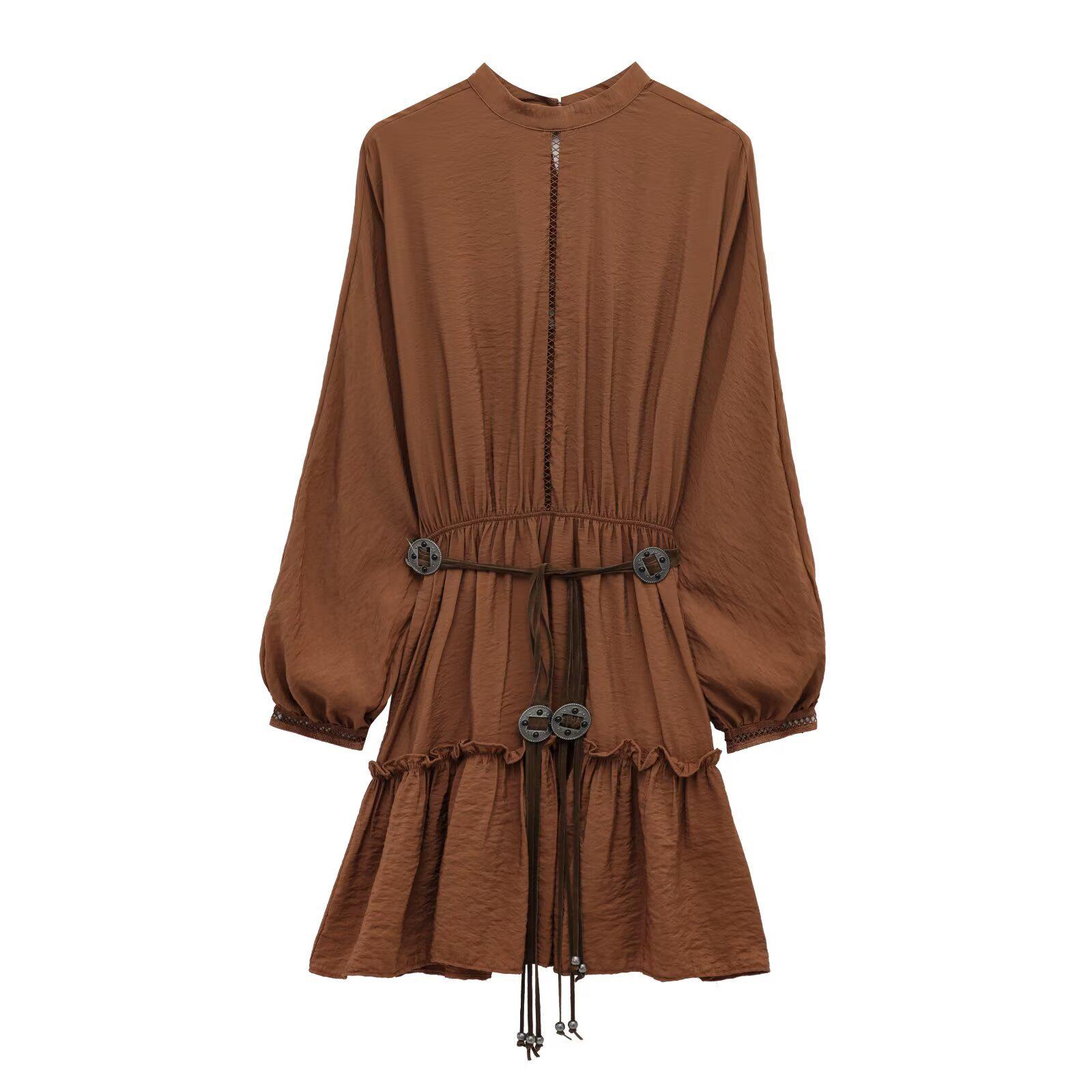 Весна 2025 Женское короткое кружевное платье в европейско-американском стиле с поясом Small