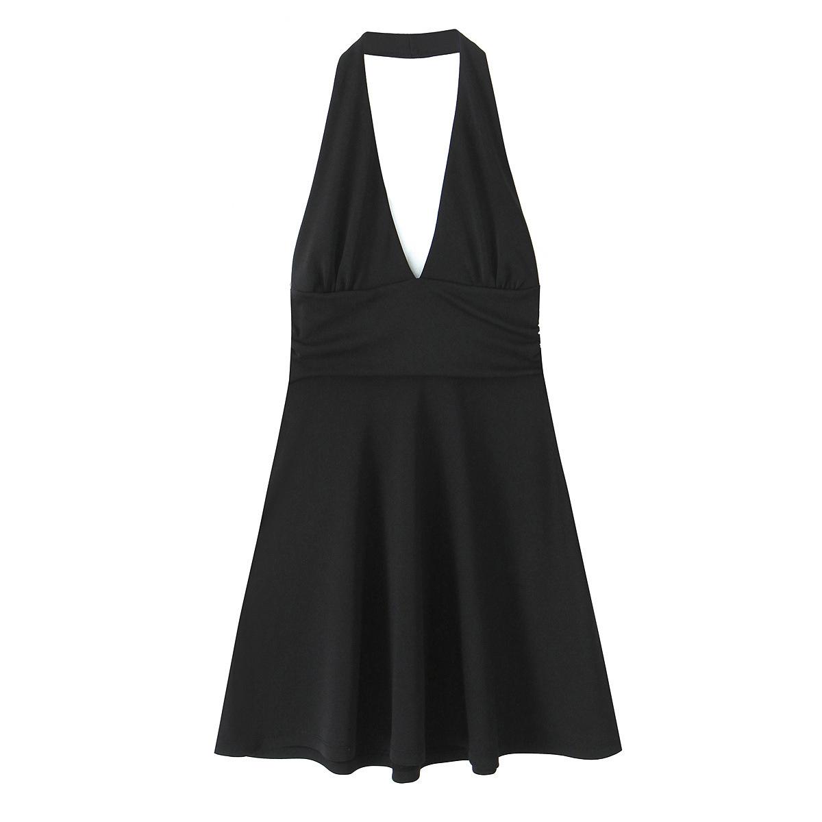 Весна 2025 Женское платье мини в европейском и американском стиле с халтером Small чёрный