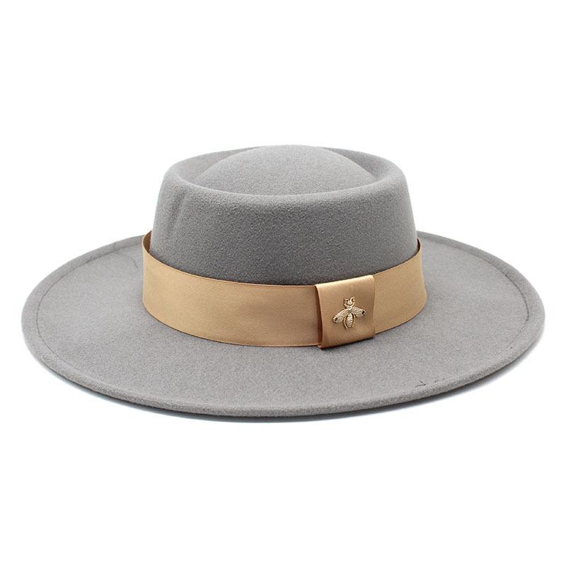 Ветер Элегантный кольцеобразный вогнутый и выпуклый плоский шерстяной цилиндр шляпа Мужская и женская мода плоский шерстяной цилиндр шляпа M(56-58cm) светло-серый