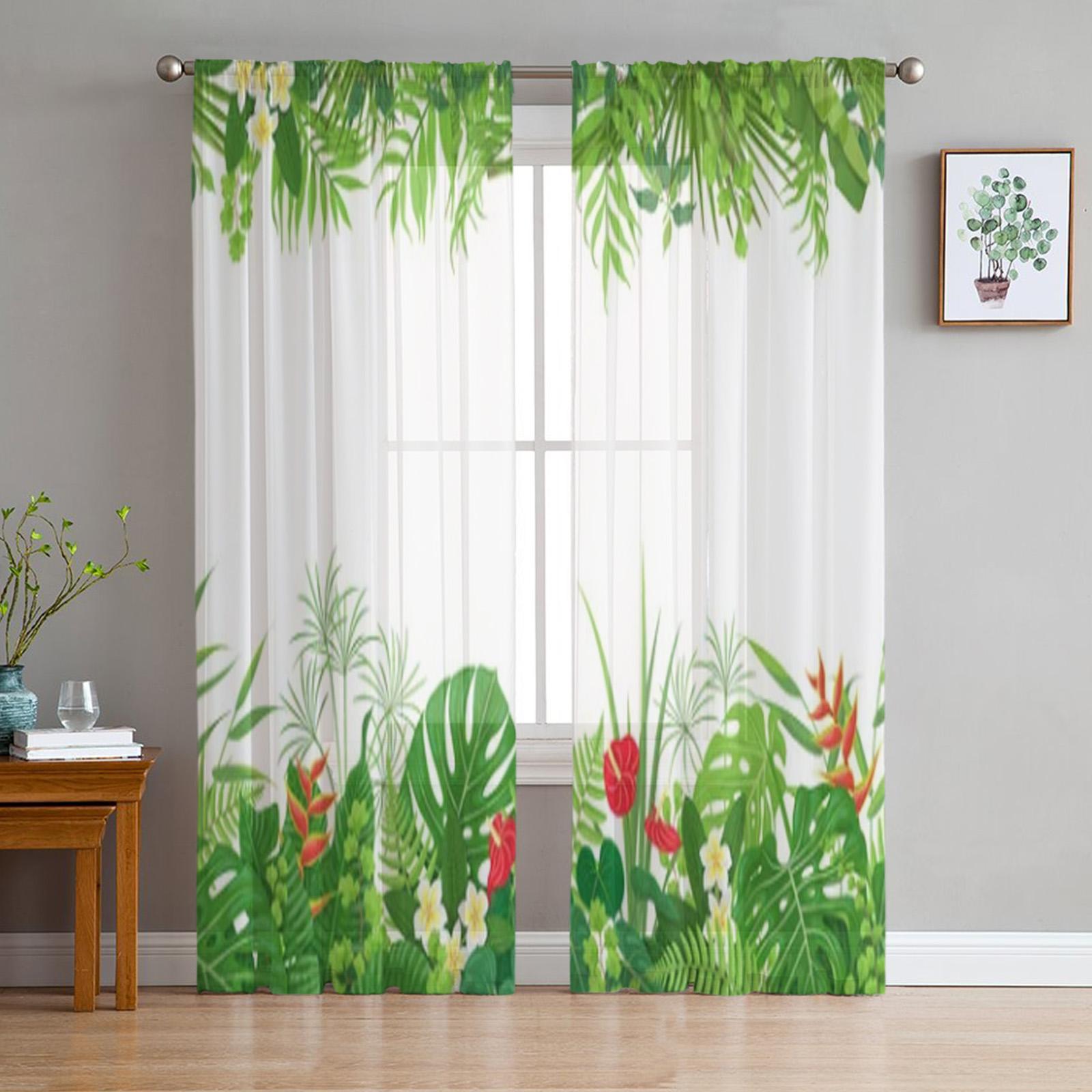 Ветка Свежие Зеленые Листья Прозрачные Шторы для Гостиной Прозрачный Тюль Оконные Шторы Спальня Кухня Домашний Декор Вуаль Шторы 135W x 114H(cm)