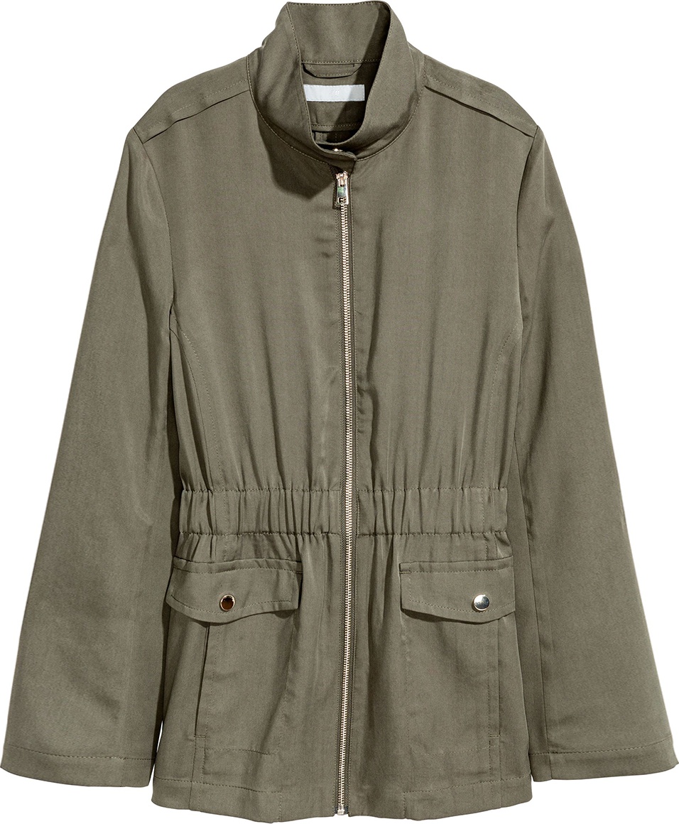 Легкая куртка из лиоцелла с высоким воротником-стойкой на молнии спереди и длинными рукавами с пуговицами. Широкий эластичный пояс и передние карманы с клапаном.Hennes & Mauritz (H&M) — известный шведский бренд, который производит одежду, обувь, нижнее белье, косметику, аксессуары в невысоком ценовом сегменте. Над коллекциями бренда H&M работают креативные дизайнеры, а в производстве используются современные технологии. Сегодня H&M — это самая крупная сеть в Европе. Ее покупатели – это молодые люди, которые хотят недорого и стильно одеваться, выглядеть на все 100% и с каждой новой коллекцией менять свой образ.