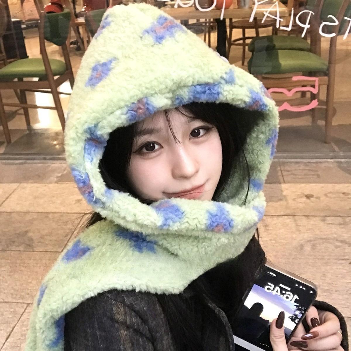 Ветрозащитная шапка-шарф 2-в-1 женская зимняя новая теплая из овечьей шерсти для велоспорта с защитой ушей и капюшоном M(55-58cm)