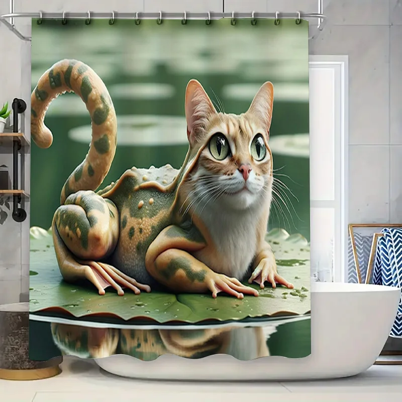 Занавеска для душа с изображением животных, кошка, лягушка, принт, индивидуальная водонепроницаемая ткань для украшения ванной комнаты, современный художественный дизайн