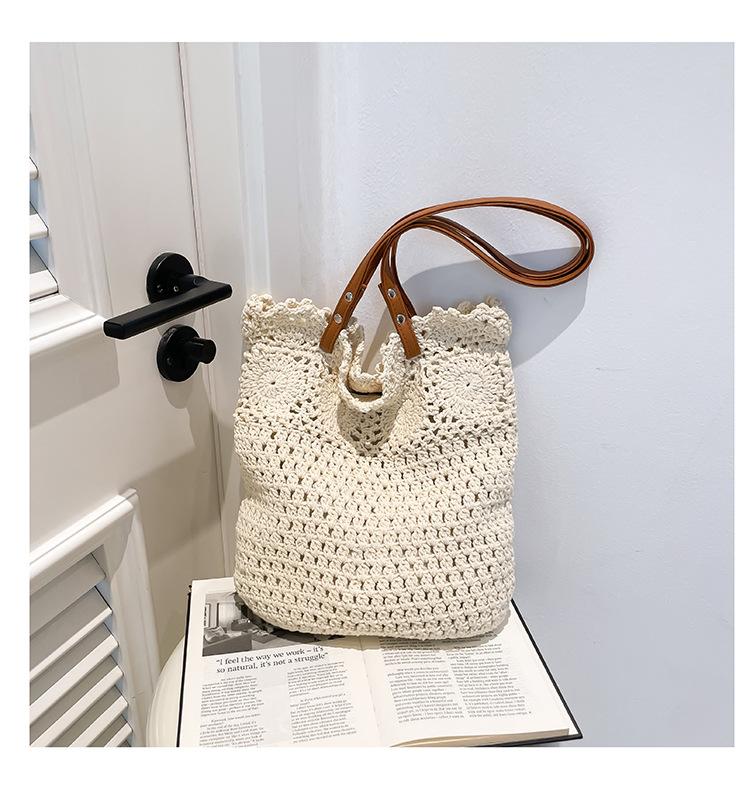 Ветряная плетеная сумка женская 2025 новая высококлассная атмосфера работа отпуск вязаная пляжная сумка белый