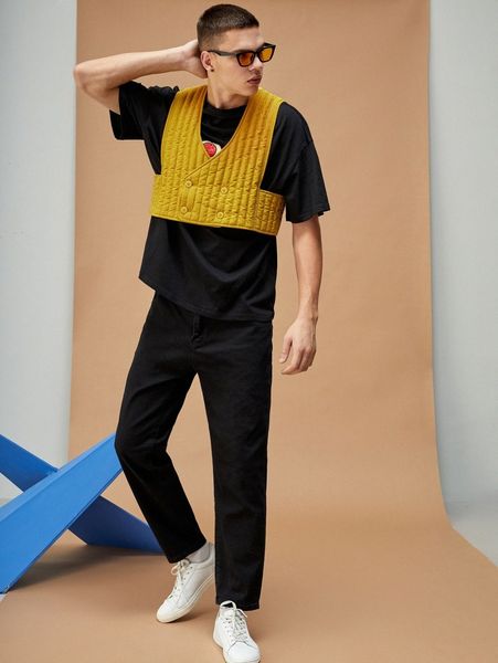 x helena caballero men graphic embroidery crop tank without tee j2lo#, White;black
