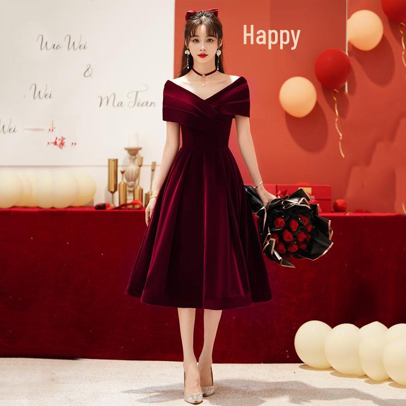 Вечернее платье винного цвета с открытыми плечами для невест размера плюс, миниатюрных и беременных женщин - закрывает живот S
