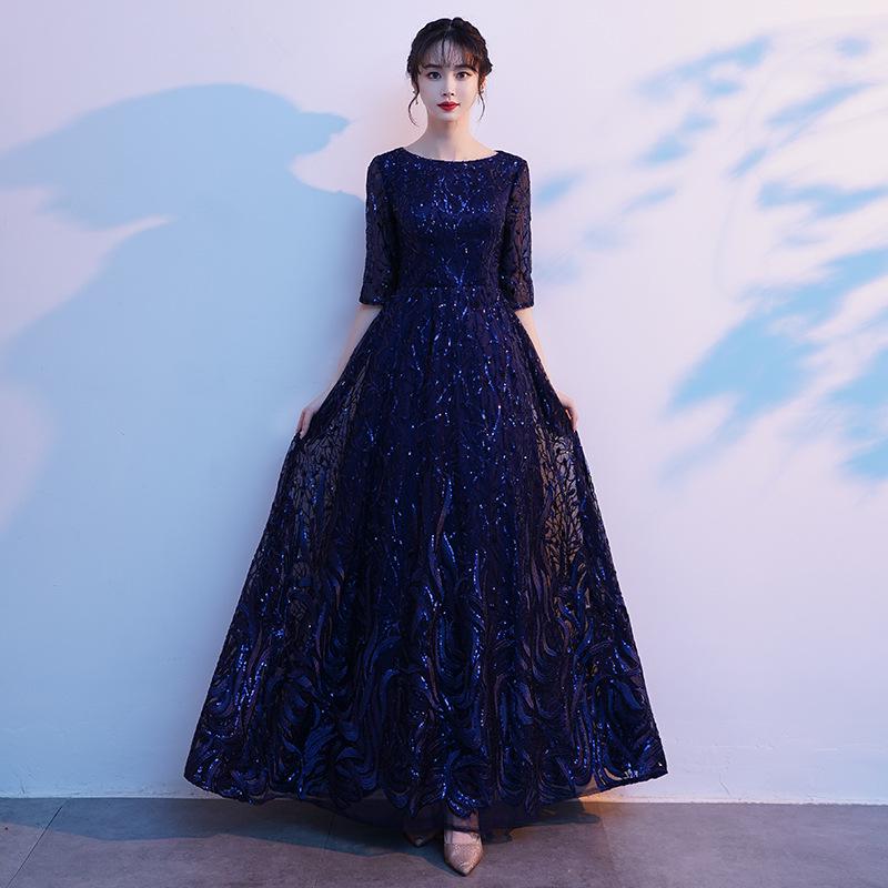 Вечернее платье для выступления женского хора - Длинное, элегантное платье для банкета, свадьбы или повседневной носки XXL темно-синий