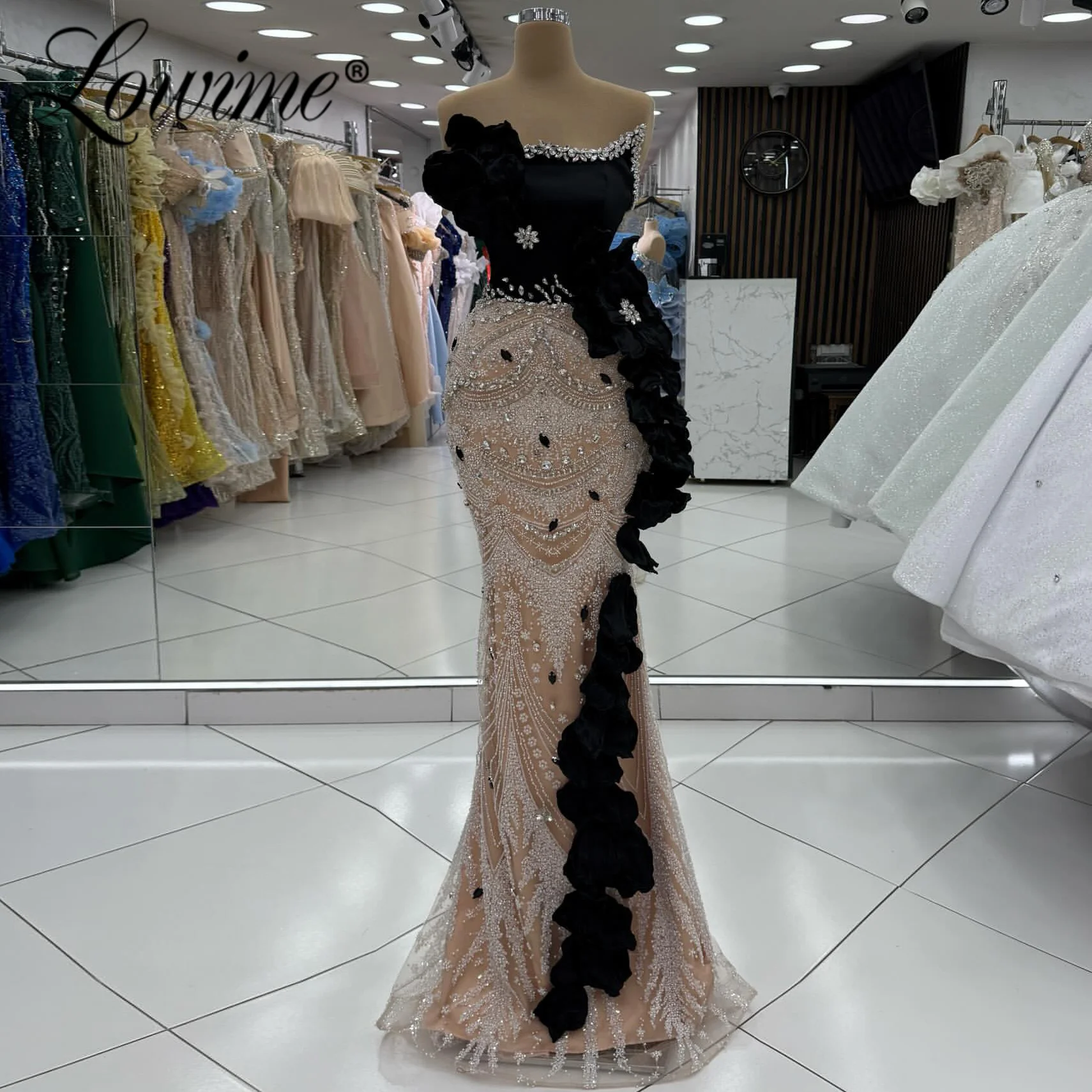 Вечернее платье черного и цвета шампанского 2026, элегантное вечернее платье по индивидуальному заказу, женское платье без бретелек с русалкой и цветочными кристаллами, длинные платья для выпускного вечера