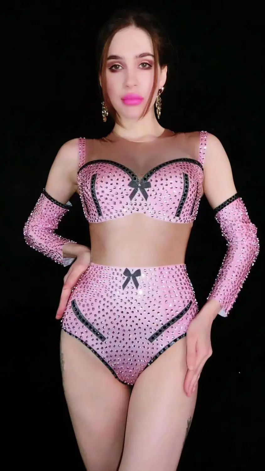 Вечерние ний сексуальный костюм для девушек, костюм для певицы, блестящий костюм для современных танцев, розовый комбинезон для выступлений