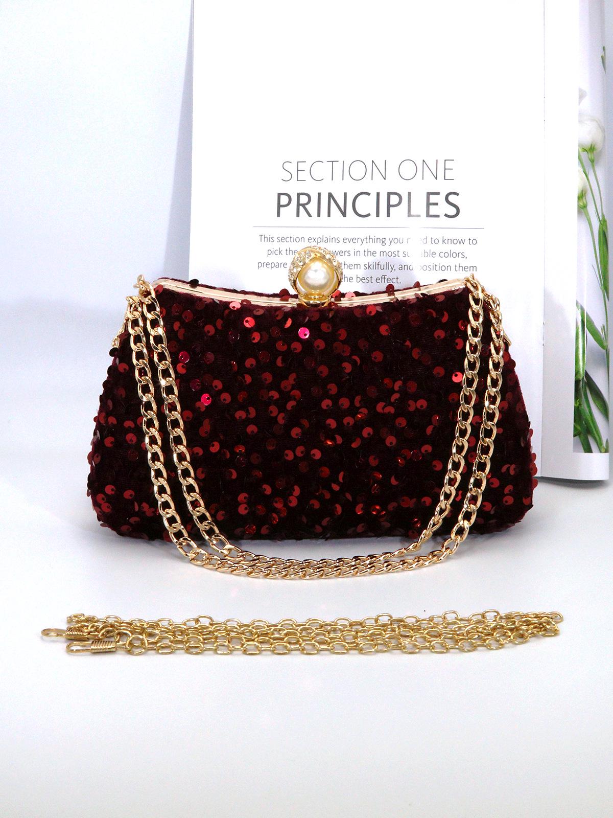 Европейская и американская женская вечерняя сумка кроссбоди с пайетками и жемчужной отделкой вино красного