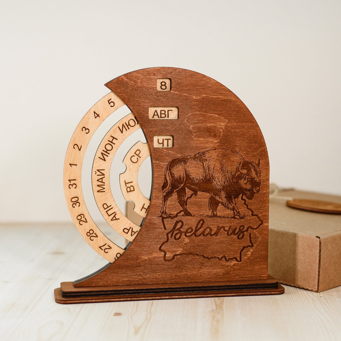 Вечный календарь Творческая мастерская "Пуговка" Анастасии Минич Зубр с картой Беларуси