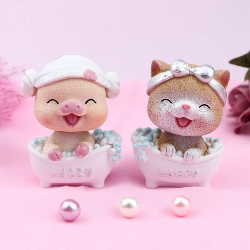 Креативная мультяшная счастливая кошка со встряхиванием, маленькая статуэтка кошки, статуэтка автомобиля, поделки, садовая фигурка, украше...