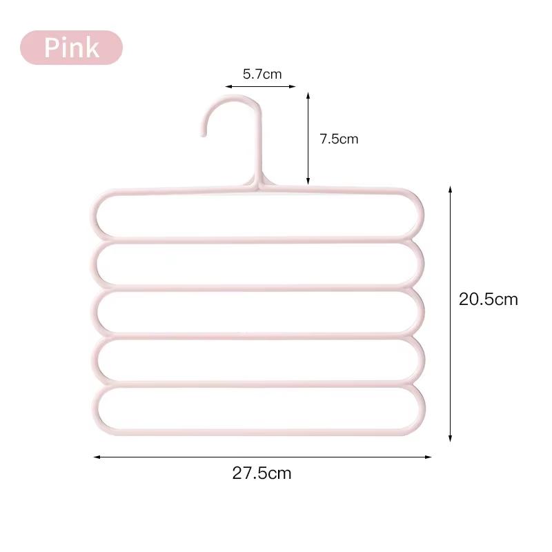 Вешалка для брюк 5-слойная: Прочная, многофункциональная пластиковая стойка с простым однотонным цветом и простым местом для хранения шарфов розовый