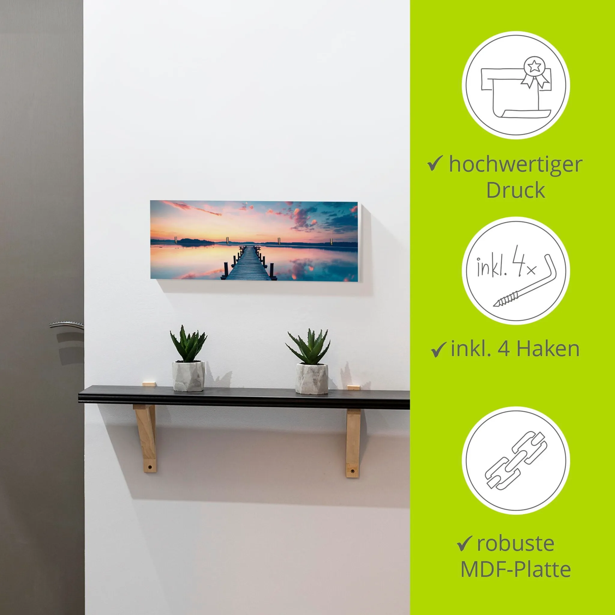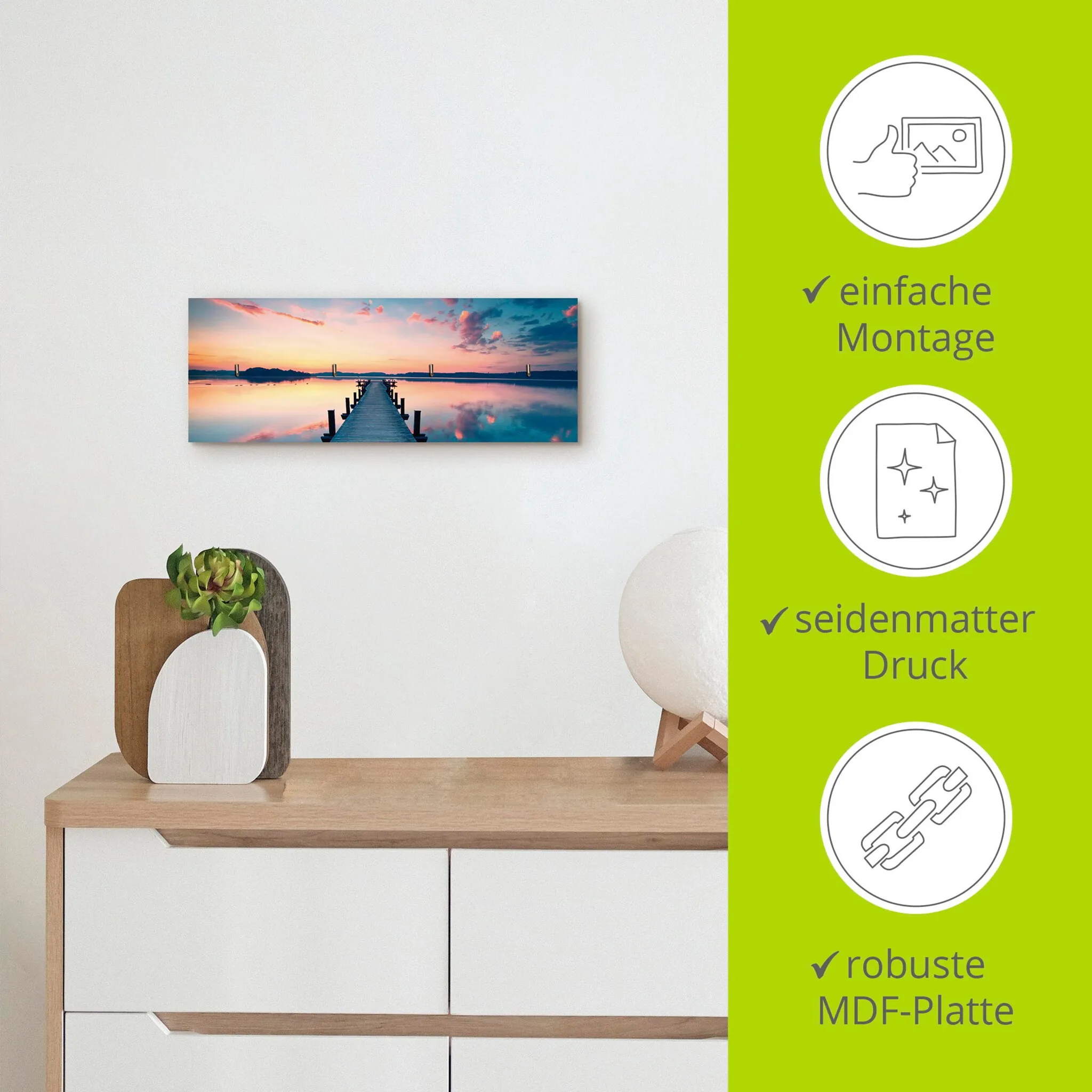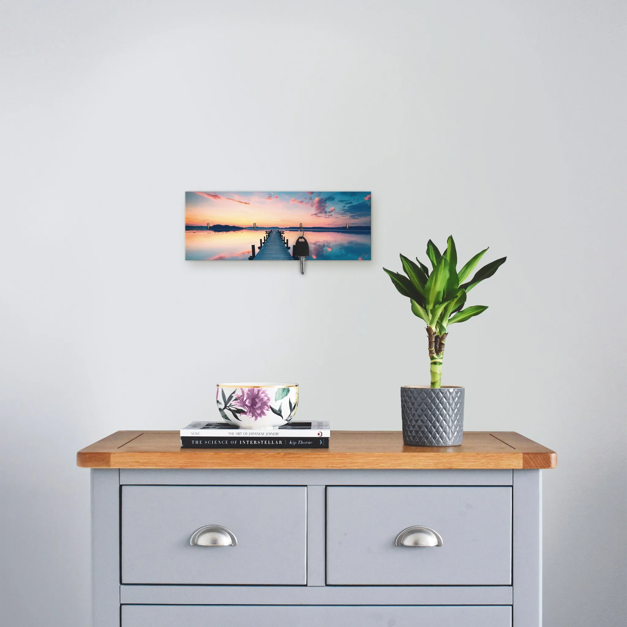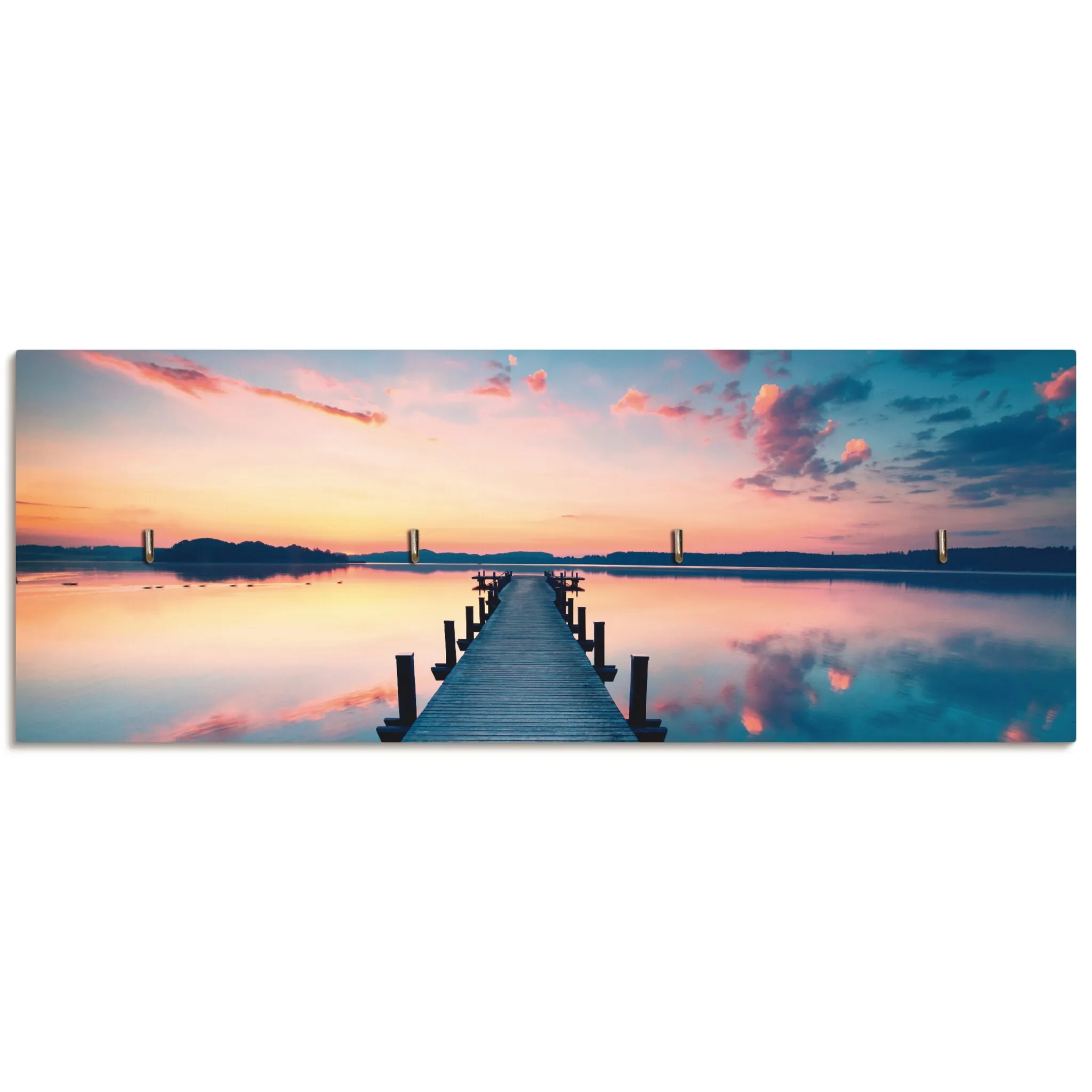 Вешалка для крючков Artland «Длинный пирс на озере в рассвете», МДФ, цвет blau