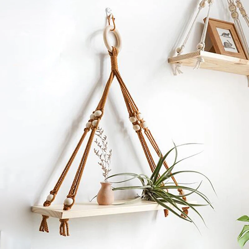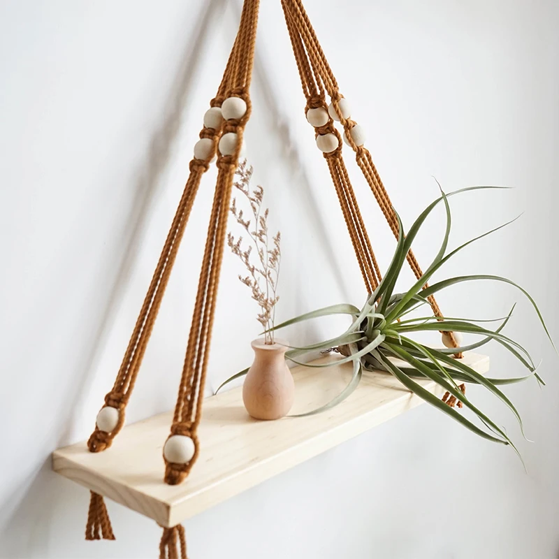 Вешалка для макраме ручной работы с деревянной доской, деревянная вешалка для растений, поднос для растений