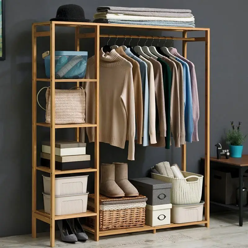Вешалка для одежды из бамбукового дерева с полками, вешалка для одежды, подставка для детей, детей, взрослых, вешалка для хранения обуви и пальто
