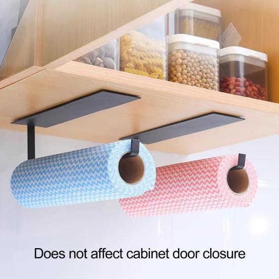 Вешалка для рулонов бумаги Горизонтальная с липкой лентой Конструкция с защитой от падения Крепление под шкафом Организация кухонных столешниц Маслопоглощающий держатель листа белый