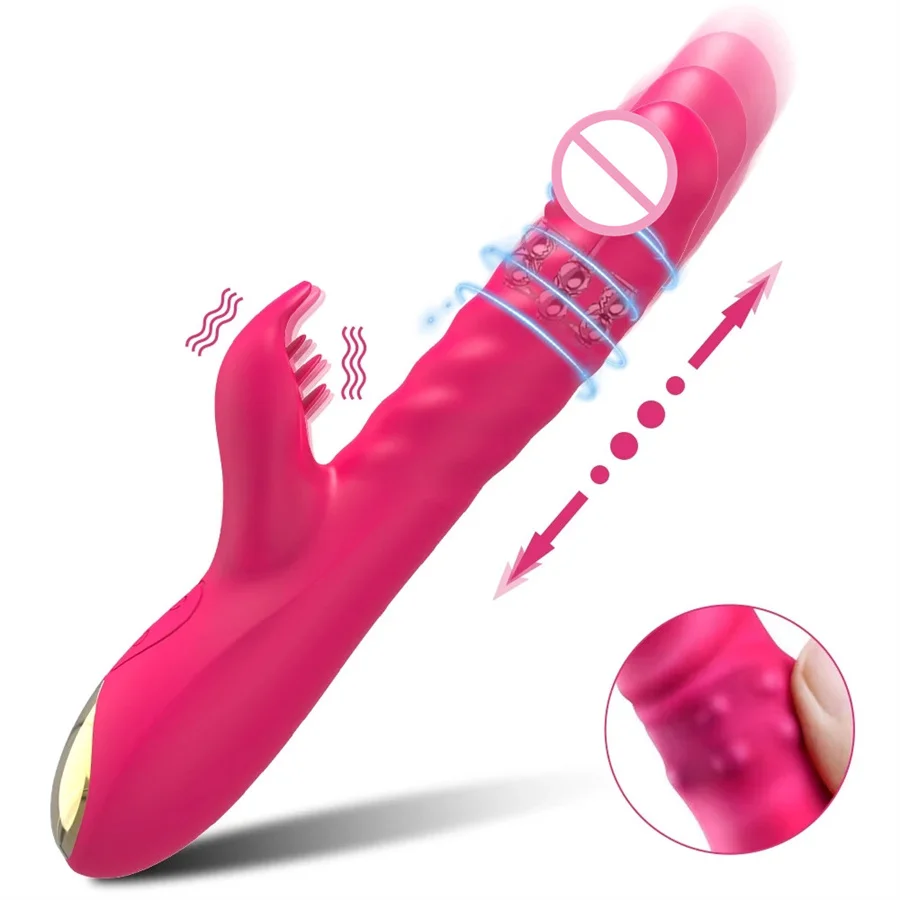 Вибратор Кролик, телескопический вибратор для стимуляции Вагины и точки G, фаллоимитатор для стимуляции клитора, вибрирующее устройство для мастурбации