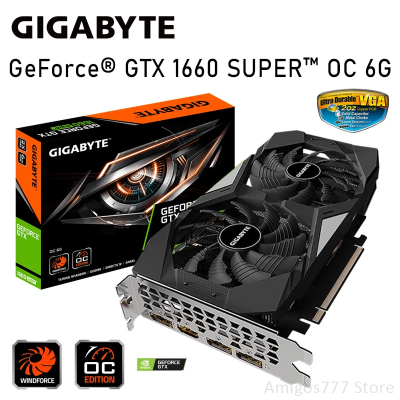 Видеокарта GDDR6 Gigabyte GeForce GTX 1660 SUPER OC 6G 14000 бит HDCP для майнинга, графическая карта 1660 МГц 8Pin GTX для супер майнинга, новинка