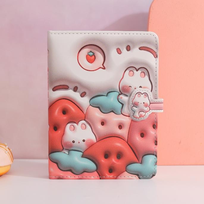 Ez23 Ew64 Buku Diary PU Leather Magnetic Notebook Motif 3D RABBIT Jurnal Agenda Original Terlaris