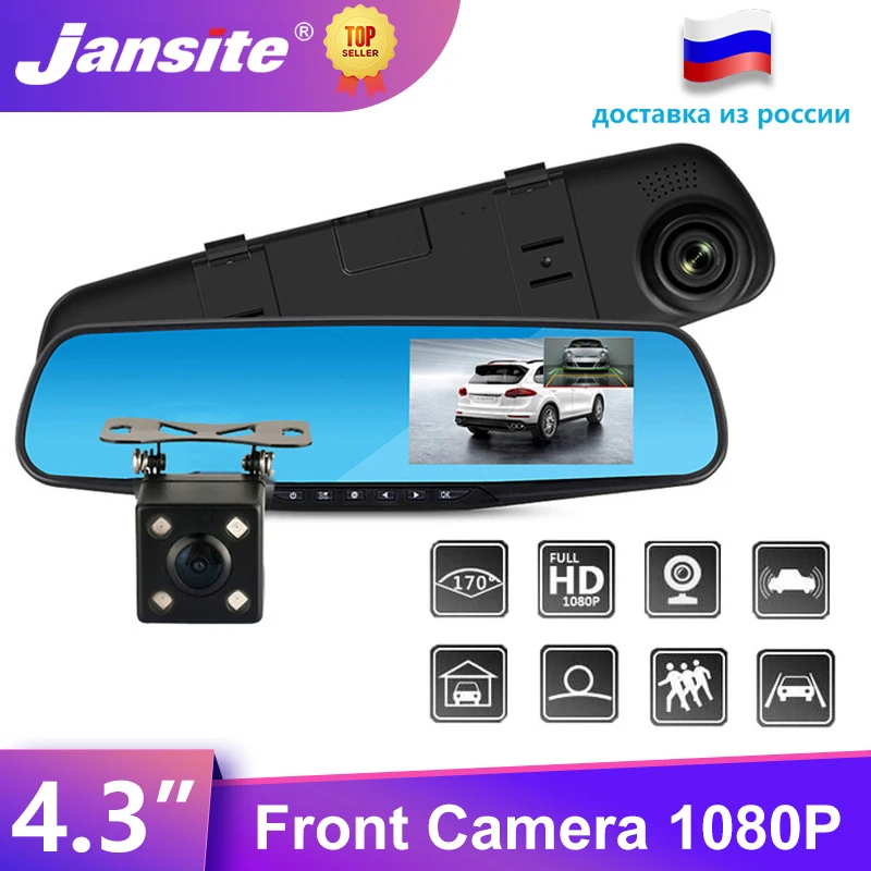 Видеорегистратор Jansite для автомобилей, авторегистратор DVR с камерой Full HD 1080P и двойным объективом, зеркало заднего вида с функцией регистрат...