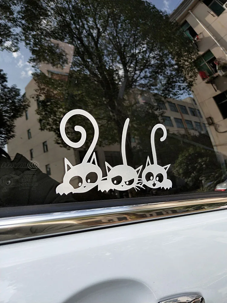 Виниловая наклейка ZTTZDY 15,7x8,2 см с тремя вертикальными хвостиками и кошками, черная/серебристая