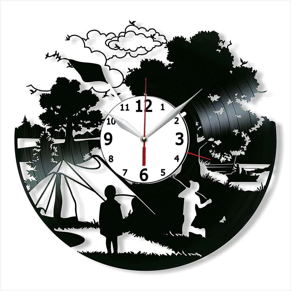 Виниловые часы для кемпинга 12 дюймов, настенные часы для кемпинга, лучший подарок для любителей кемпинга, оригинальный настенный домашний д...
