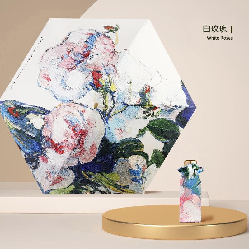 Виниловый зонт со скидкой 50% на складной зонтик с золотым клеем, солнцезащитный крем, масляная живопись, мини-карманный зонт, креативный зонт