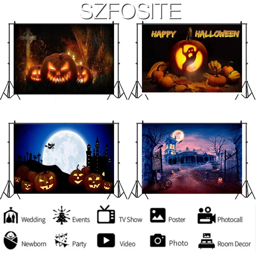 Виниловый фон для детской фотосъемки с изображением темного замка тыквы фонаря Хэллоуина праздника вечеринки семейного украшения