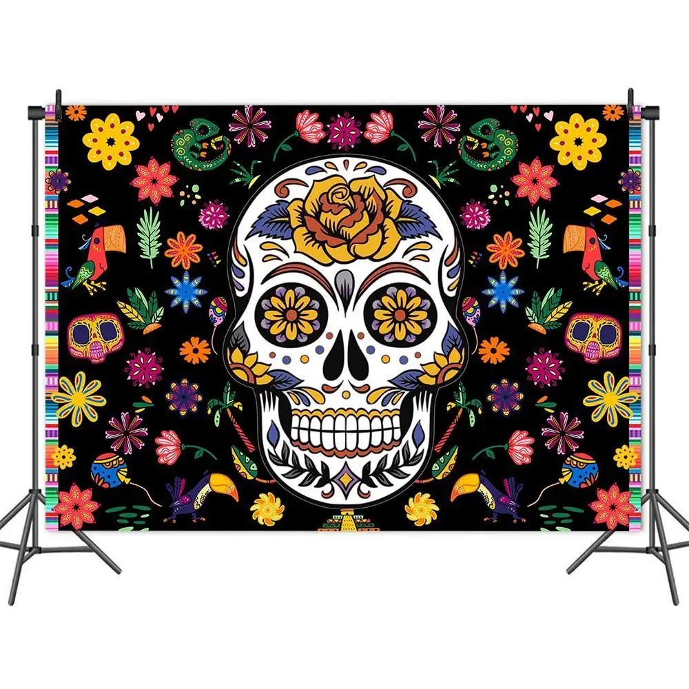 Виниловый фон для детской фотосъемки с изображением черепа и цветов