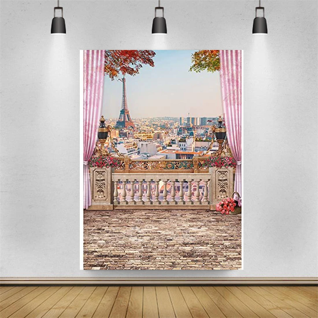Виниловый фон для фотостудии с изображением Эйфелевой башни Парижа балкона