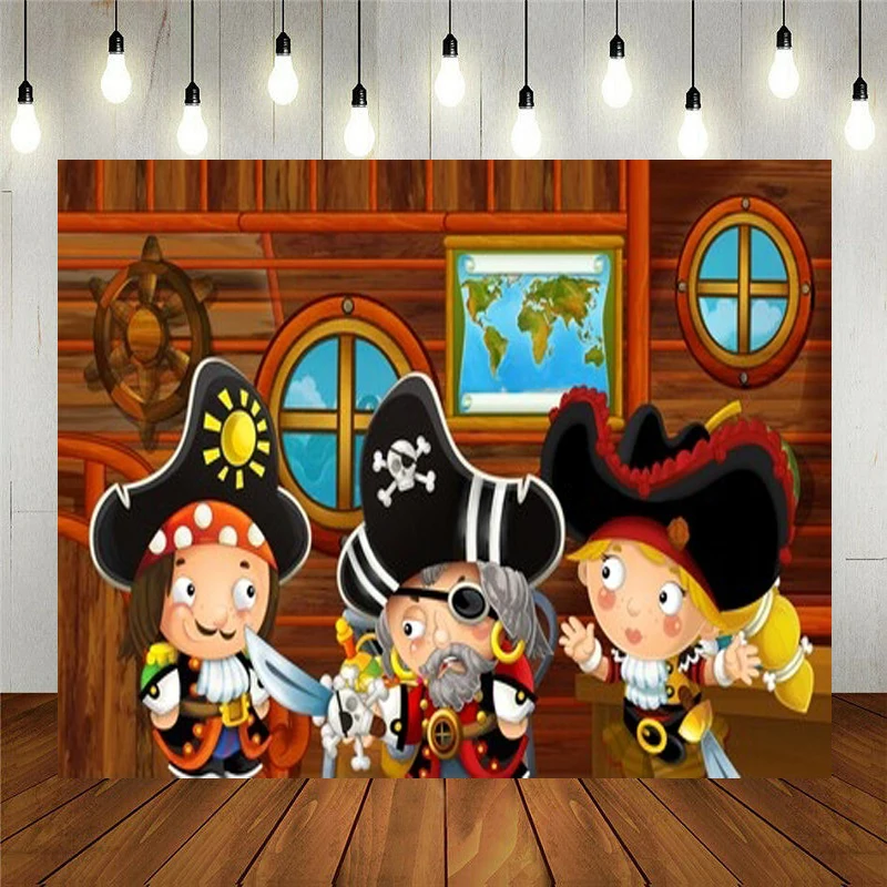 Виниловый фон для фотостудии с изображением влюбленных пиратов пар Парусников по морю