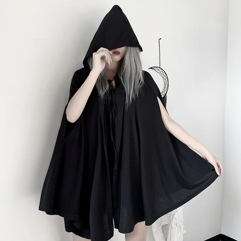 Винтажная Готическая накидка, пончо в стиле Харадзюку, с капюшоном и ремешком, плиссированная верхняя одежда, зима 2021