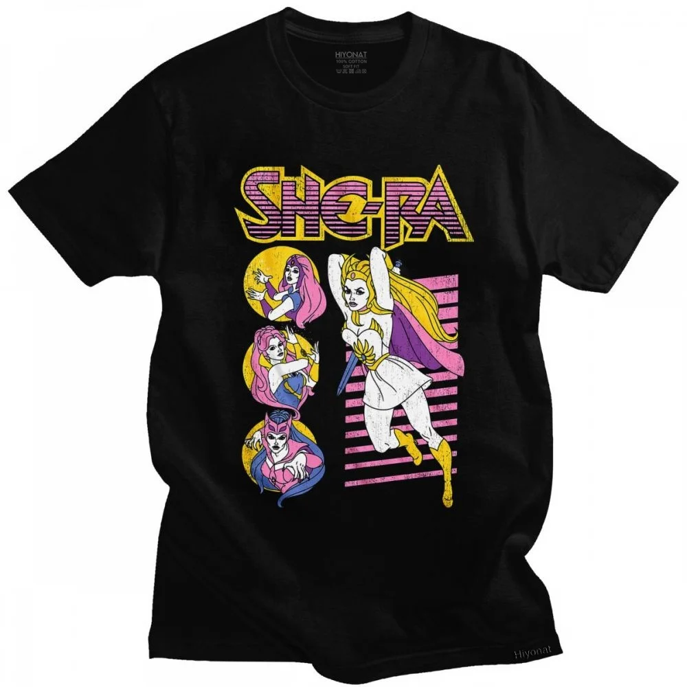 Винтажная Мужская футболка She-Ra, футболка из чистого хлопка, Мужская футболка He-Man и мастера вселенной, футболка с коротким рукавом и принтом ...